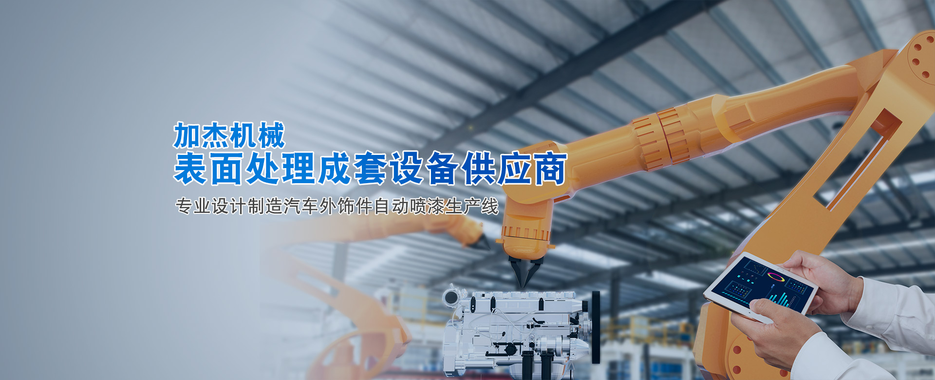 加杰智能裝備(廣東)有限公司是廣州市加杰機(jī)械設(shè)備有限公司的全資子公司,加杰成立于2007年。是一家專業(yè)于表面處理行業(yè)智能化涂裝設(shè)備的研發(fā)、設(shè)計(jì)、制造、安裝與售后為一體的綜合型企業(yè),專業(yè)于塑膠、金屬部件的噴漆、電泳、噴粉等成套自動(dòng)涂裝線交鑰匙工程。 公司在廣州花都和廣清產(chǎn)業(yè)園均有自建研發(fā)及生產(chǎn)基地,占地面積六萬余㎡,旗下有加杰智能、川捷智能、漢潔科技、泰國加杰四家子公司。公司同華南理工、廣工、北理工等知名大學(xué)院校展開深度合作,并積極展開自主創(chuàng)新和...